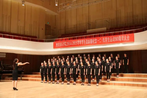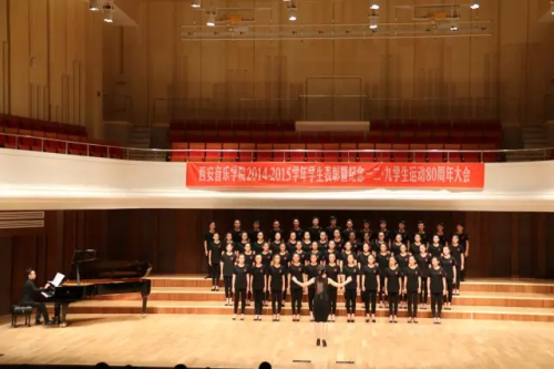 2015年12月16日下午两点,由我院团委举办的“纪念一二·九学生爱国运动80周年合唱展演”在艺术中心顺利举行。我系歌舞表演专业的同学们代表舞蹈系与本院其他专业的学生同台演唱。强大的气场,优雅的外形,动人的歌喉,赢得了台下所有观众的掌声。本次我系告别以"舞"抒情的表演方式,而是"以声传情"吟唱一首婉转优雅的《南泥湾》,旋律弥漫着整个舞台,灯光映射着歌者,无不透露着“美”的气息。