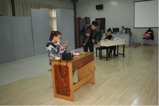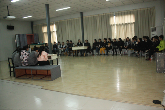 2016年3月17日下午在南301教室,2015级表演班上戏剧表演课,教师张绵君授课,班主任王尚清参加听课。戏剧课上同学们编排了《姐姐的小秘密》、《演出前的后台》、《狭路相逢》等六组内容丰富的小品节目,同学们才思敏捷,表现生动,通过自己的表演展现了90后大学生的精神面貌。下面是上课情况: