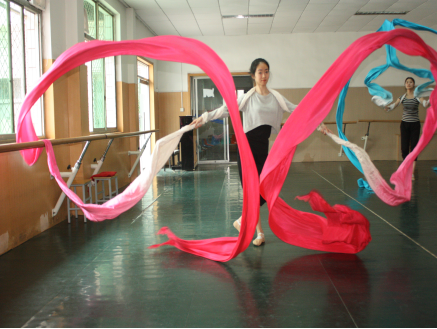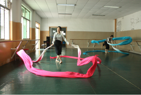 2016年4月23至5月1日高金荣敦煌舞教学周。本次敦煌舞教学是舞蹈系第二次聘请著名舞蹈家,敦煌舞专家高金荣教授来舞蹈系进行敦煌舞教学,共排练5个剧目,1、《六臂香音》2、《莫高女神》3、《双飞天》4、《思维菩萨》5、《反弹伎乐》。5个剧目将于7月赴台湾参加演出。下面是敦煌舞教学周4月26日的情况: