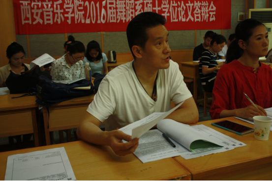2016年5月11日下午2:30舞蹈系在4-213室进行《2016申请硕士学位研究生论文答辩会》,参加答辩会的评委老师:仵埂、李颖梁伟、高莎、王延松等五位,学生有:许珍、赵阳艺、王少丹,下面是论文答辩会的情况: