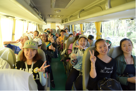 2016年9月11日舞蹈系61名同学高高兴兴乘车前往大唐芙蓉园进行排练
