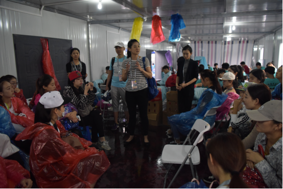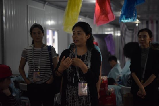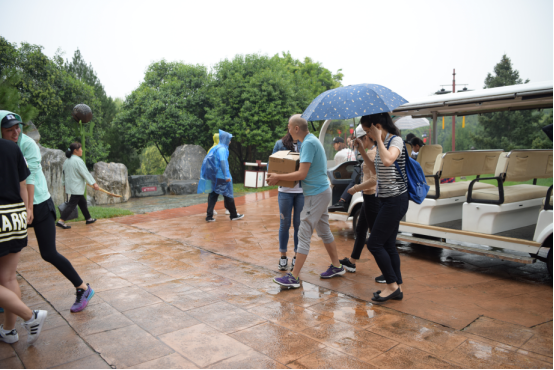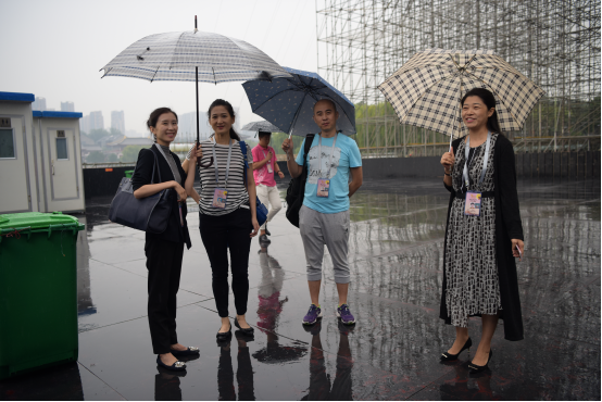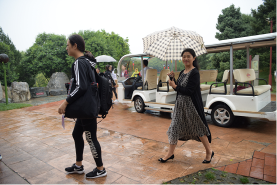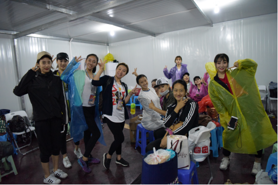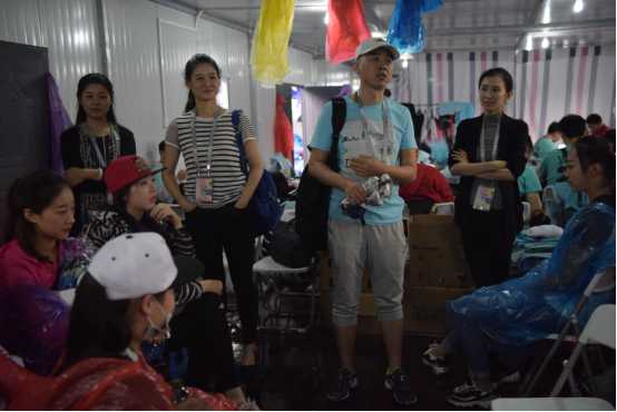 2016年9月12日下午舞蹈系领导在雨中看望中秋晚会排练的同学们
