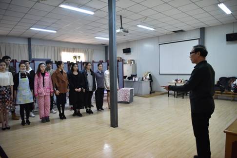 教室进行戏剧课考试前的彩排,下面是同学们考试彩排情况。