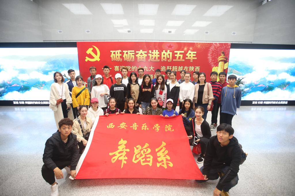 在十月一日“伟大祖国的生日”到来之际,舞蹈系团总支、学生党支部组织学生党员、入党积极分子和17级部分新生进行了一次有意义的“庆生活动”,于2017年9月27日前往陕西历史博物馆参观“砥砺奋进的五年——喜迎党的十九大,追赶超越在陕西”主题展览。虽然天公不作美,下起了雨,但微凉的秋雨淋不灭同学们心中的热情之火。大家知道,这可以让我们更加了解和靠近党,也是我们党员同志积极学习、了解陕西发展、充实自己的一次不可多得的机会。