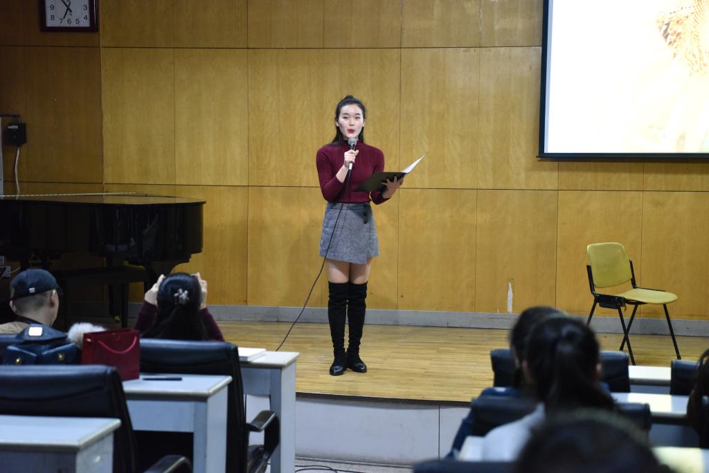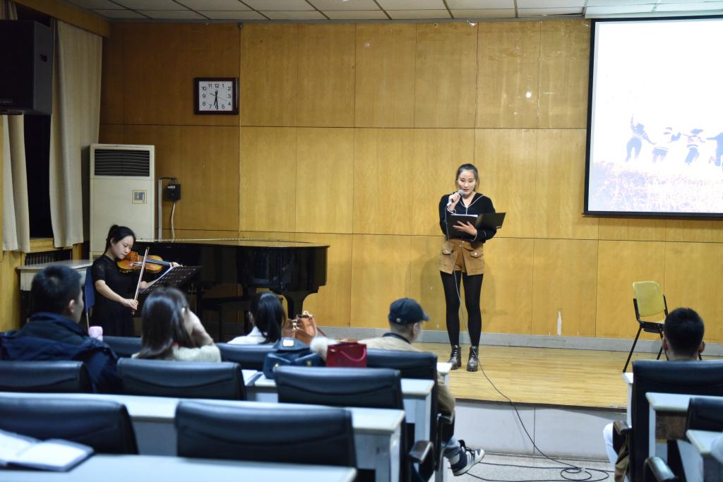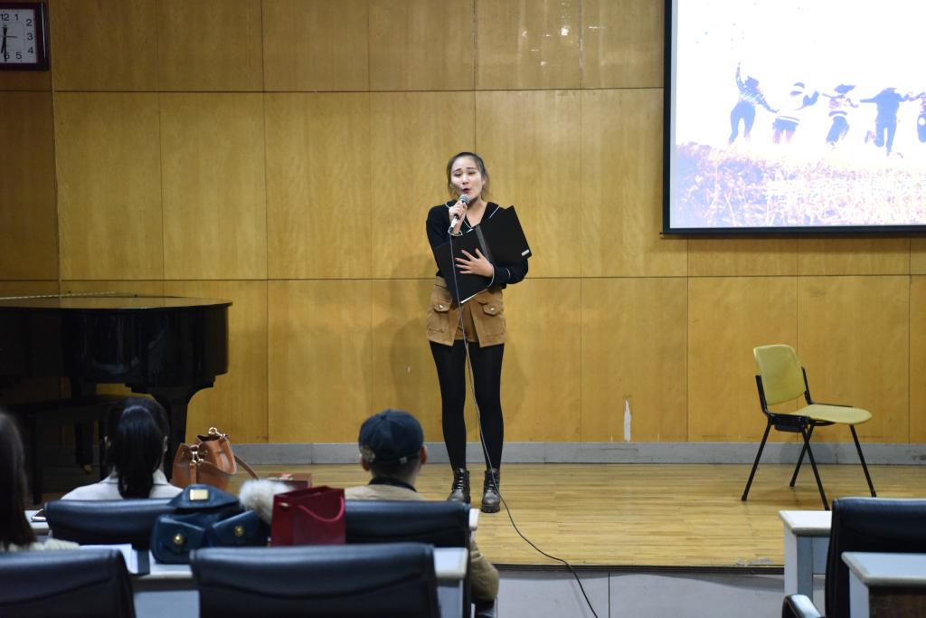 舞蹈系青年教师朱莎则分享了在美国求学两年里发生的故事,其中有遇到飓风的恐惧,有被陌生人跟踪的无奈,但也正因如此,让这位年轻美丽的老师更加懂得了坚持!因为心中有梦,所以要更加坚持前行。并借《人生》中的经典片段向青年大学生送上了美好寄语:如果大家都会做梦,都敢做梦,那么我们离梦想就又近一步。实现梦想,也许会有很多诱惑与阻碍,但只要还存有一点希望,还没有碰得头破血流,执着与勇敢的人,总会义无反顾的去追求。