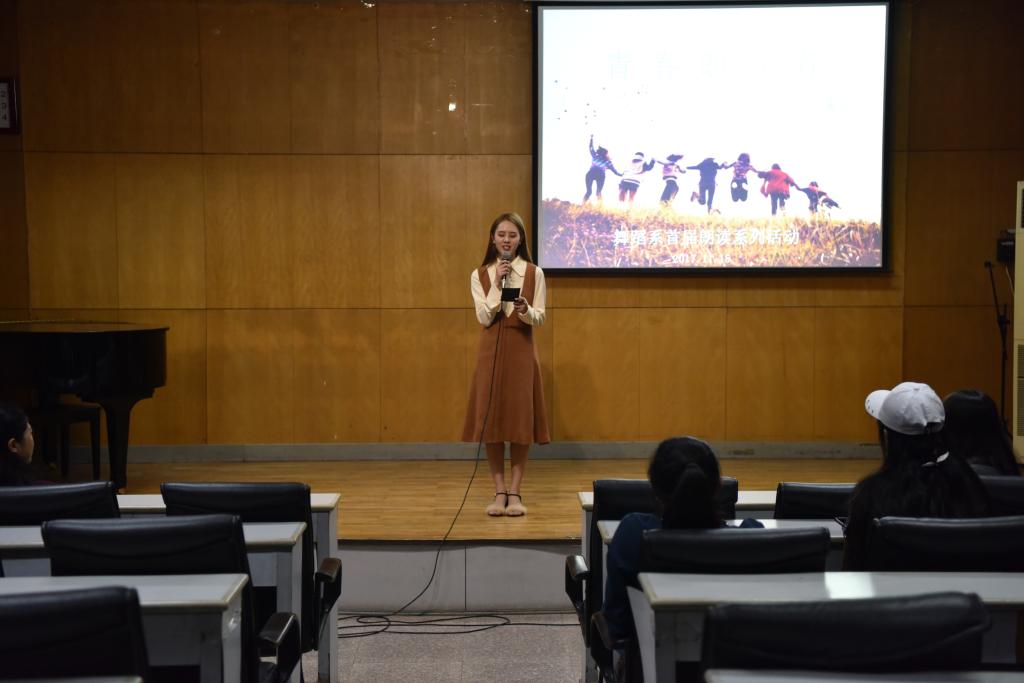 关于舞蹈系首次朗读系列活动——青春朗读者(一场与青春的邂逅)中,很荣幸成为这次朗读会的听众,去感受这次朗读会的氛围,去感受同龄人读书的分享。在此次朗读活动中的采访赵超同学的时候,他北漂的经历让我感受颇深,现在的他已经大四了,即将走出校门,踏入社会,而我是比他刚好低一个年纪,马上就要对于自己的未来有一个目标,去努力去奋斗。我的舍友国恕倩同学也参加了这次的朗读者的朗读,她分享的是《白夜行》里面的选段,从她的朗读中仿佛体会到了文中的主人公虽然眼前总是黑暗,但对于未来并不胆怯,也不害怕。