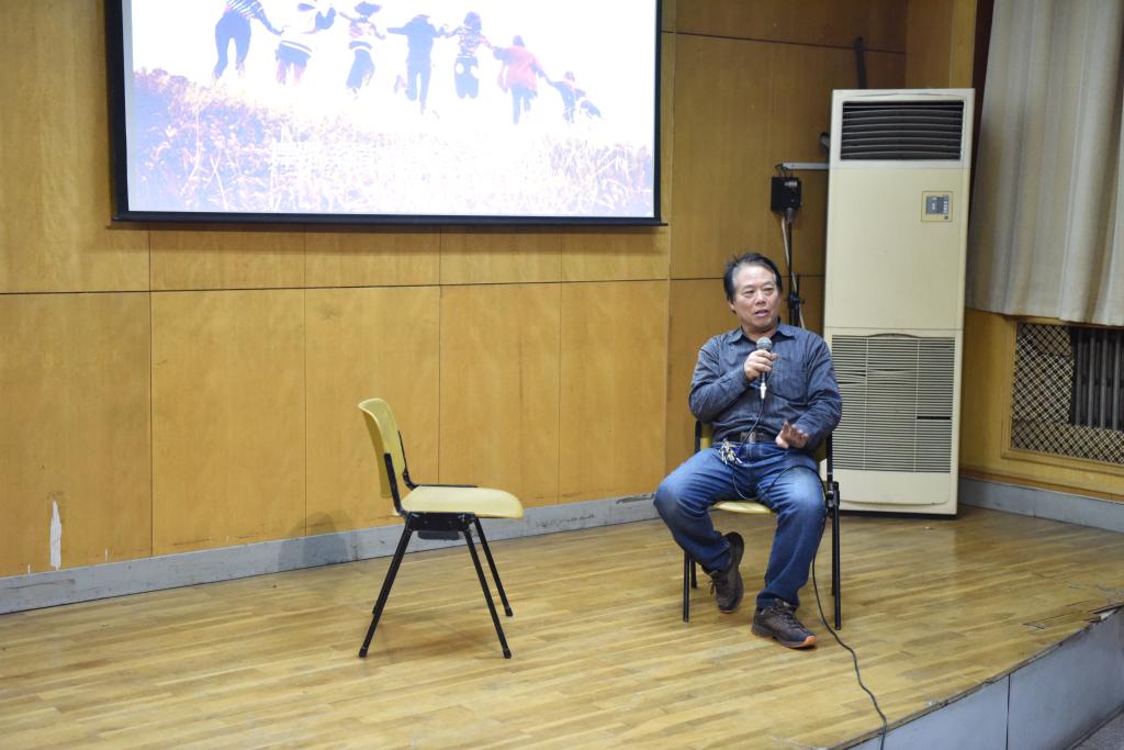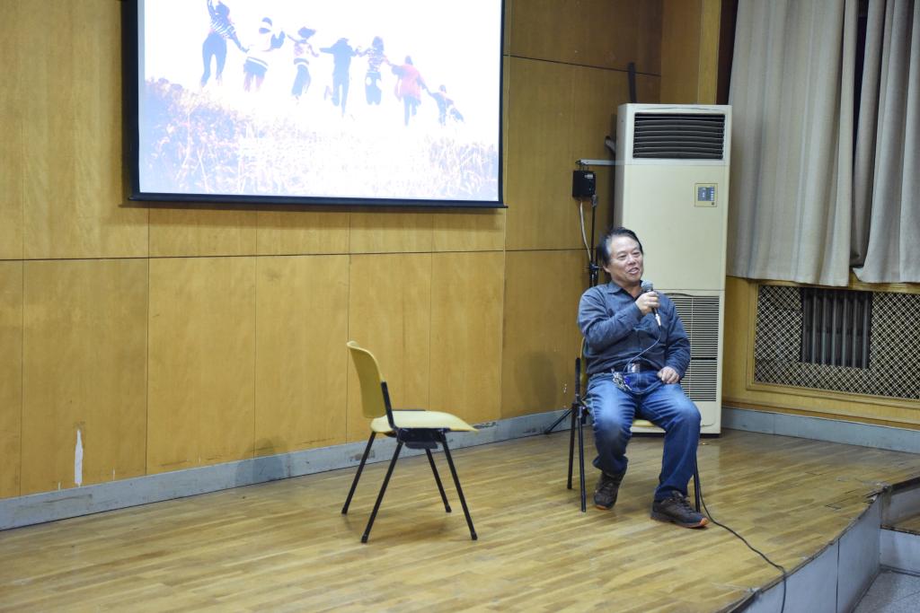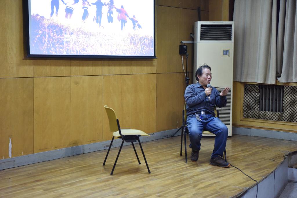 “老爹”袁老师的上台赢得了同学们的热烈鼓掌,他向我们讲述了从2007年进入舞蹈系到现在的风雨十年。师者仁心,袁老师已然成为舞蹈系这个大家庭的大管家,用相机和热情悉心记录着舞蹈系发展历程的点点滴滴,让人难以忘怀。