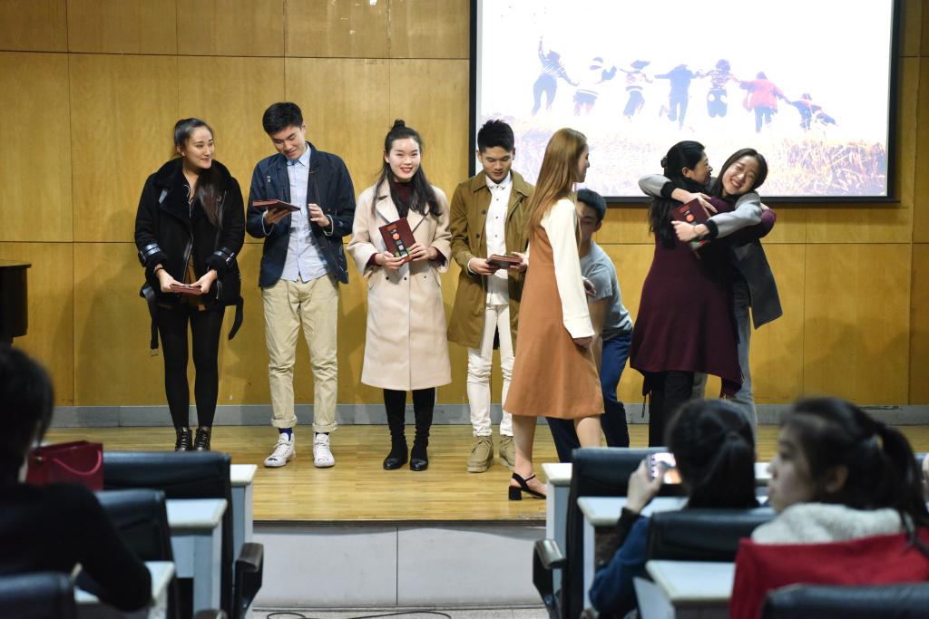 我抑制不住激动的心情,想要说两句。今晚的活动很特别,诠释了“书籍照亮青春”的活动主旨。我们打算坚持举办活动,逐步扩大引导读书的学生群体范围:习舞者→音乐艺术类大学生→大学生,真正做到“好读书、读好书、会分享”。