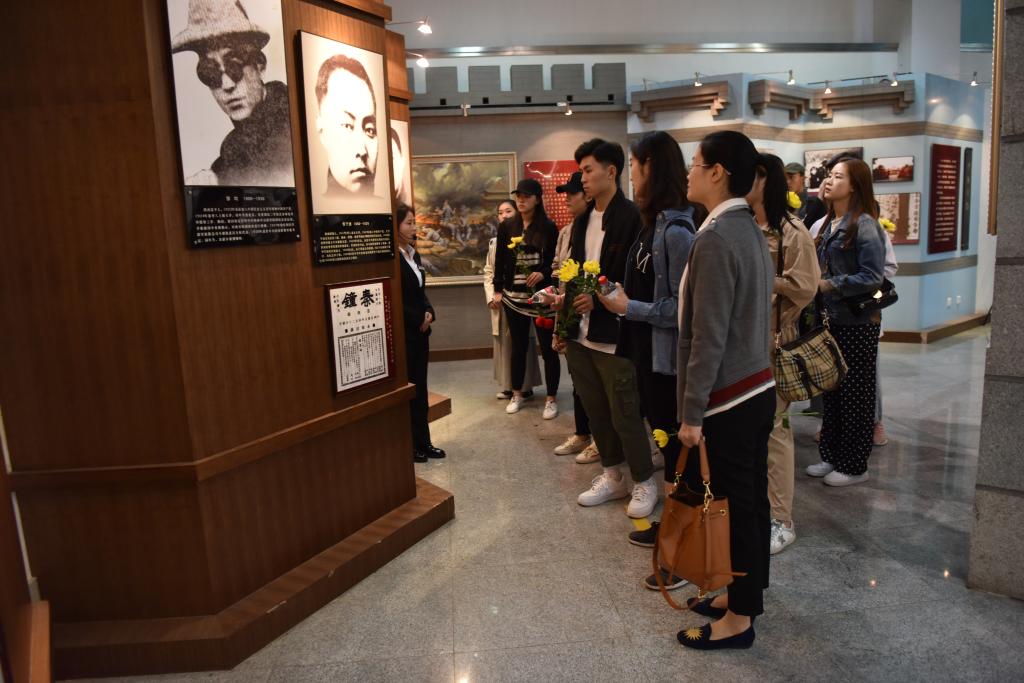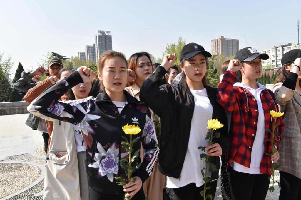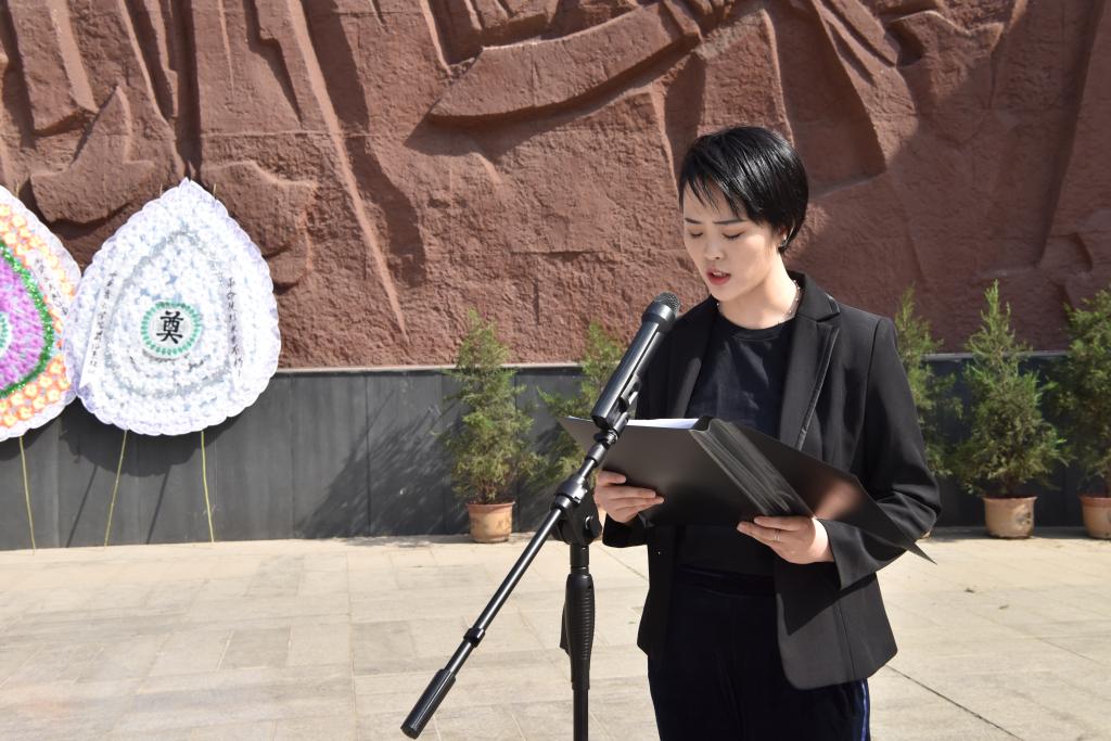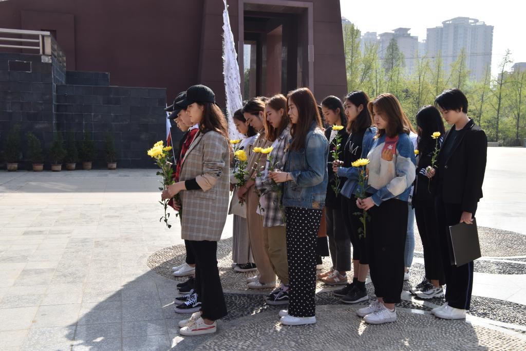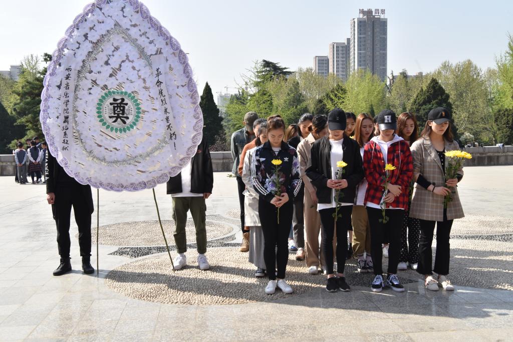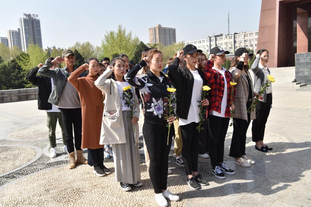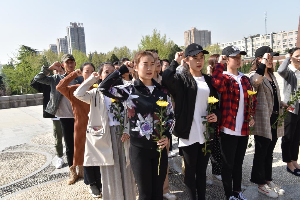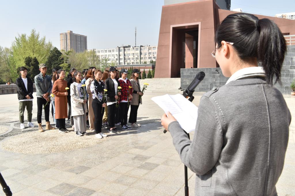 活动现场,同学们集中在烈士纪念馆浮雕广场上,气氛庄重肃穆,全体师生沉重默哀,并向烈士墓敬献花圈。学生代表刘潇娅表达了当代大学生对先烈的敬仰和缅怀之情,表示作为青年一代更应该珍惜当下,树立远大理想,不断提高自身的综合素质,为祖国的繁荣富强献出一份力。教师代表王尚清在发言中,深切表达了对长眠烈士的尊敬和怀念,期望同学们能够继承和发扬先烈们不屈不挠的拼搏精神,肩负起新时代的历史责任和使命。站在烈士纪念碑前全体师生进行庄严宣誓,并敬献鲜花。
