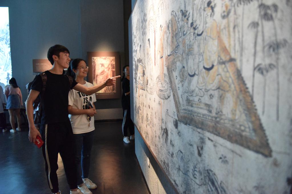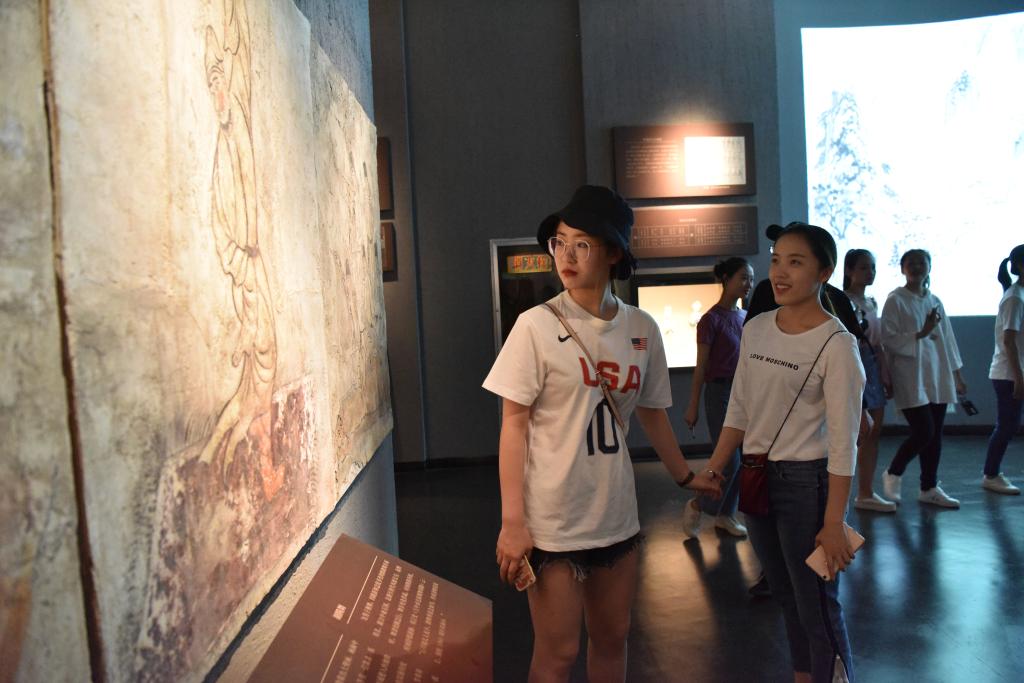 展馆内,在讲解员老师的带领下同学们安静有序,兴致勃勃的观赏了商贷的石磬,西周的编钟,以及绘有乐舞图的唐墓壁画。学习了解了中国古代乐舞发展的历程与丝绸之路上经贸交流和民族融合的轨迹。参观结束后同学们纷纷表示在这些精美的古代艺术品中得到了不同程度的启迪与灵感的迸发,收获颇丰。