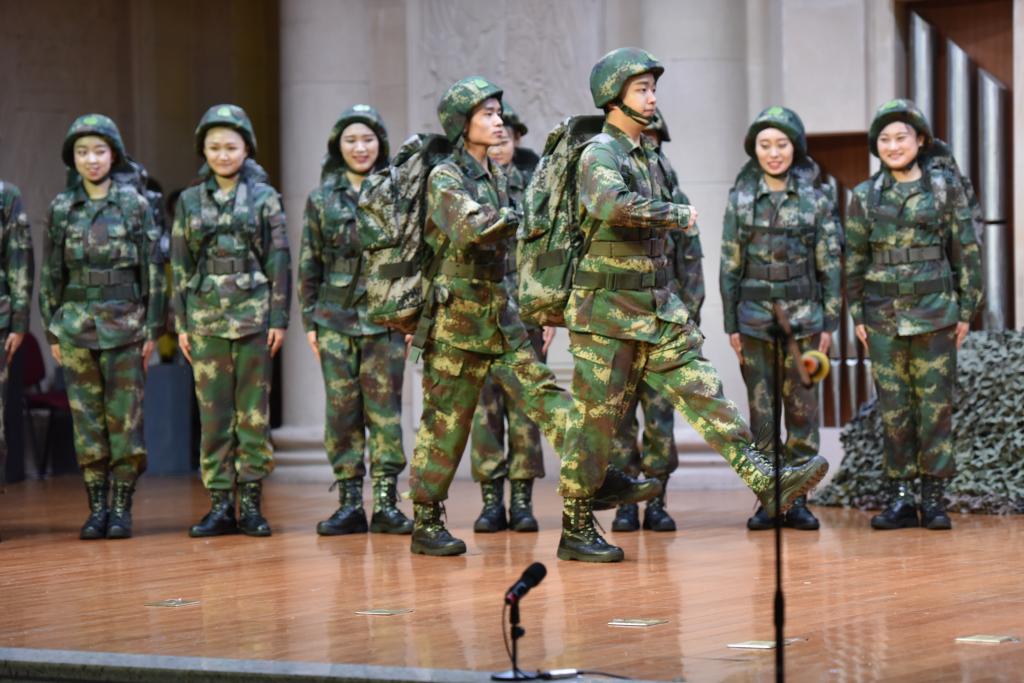 本次参赛作品《起跑线》,是由歌舞教研室戏剧老师武彬彬担任编剧及导演。为了以创新的角度迎合本次大赛的主题,武彬彬老师跳出亲情、友情、爱情等常见题材,大胆尝试以大学生入伍之后的军旅生活为题材。在短短的不到一个月的时间,同学们排除万难,抓紧一切时间参与其中,而为了让同学们更加了解军旅生活,武彬彬老师多次带领学生们亲临部队取材,体验军旅生活,亲身参与军训,与士兵同志们吃在一起,练在一起,同时了解军校大学生的心路历程。在不耽误课程的前提下,同学们利用课余时间进行排练,积极配合、齐心协力,努力向战士们高标准严要求看齐,做到“流血流汗不流泪,掉皮掉肉不掉队!”的部队精神。