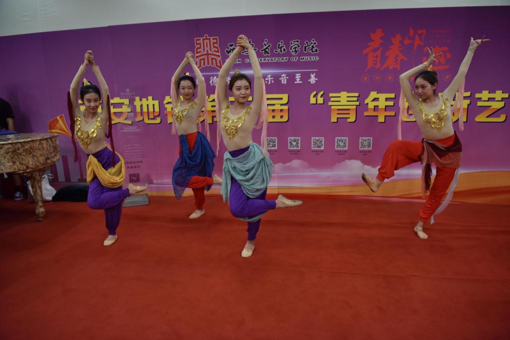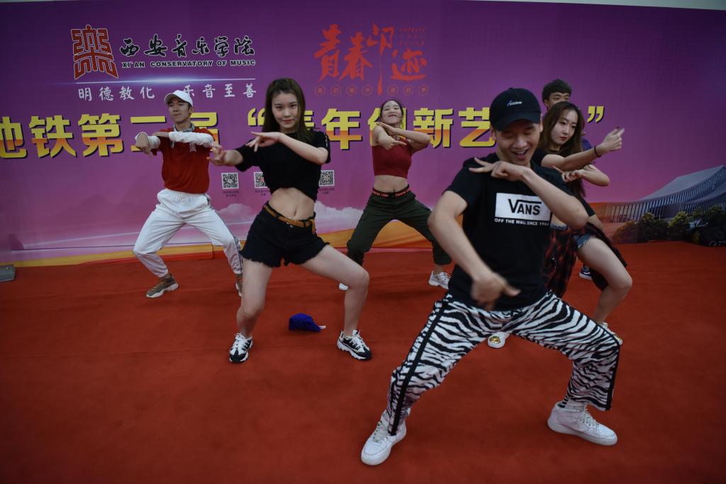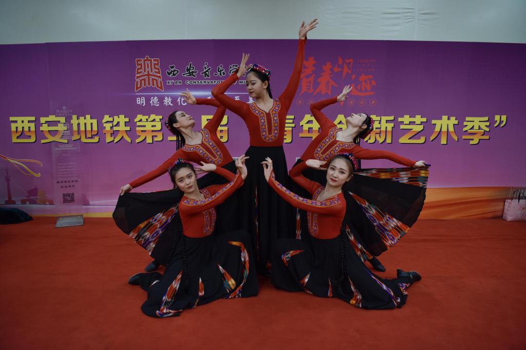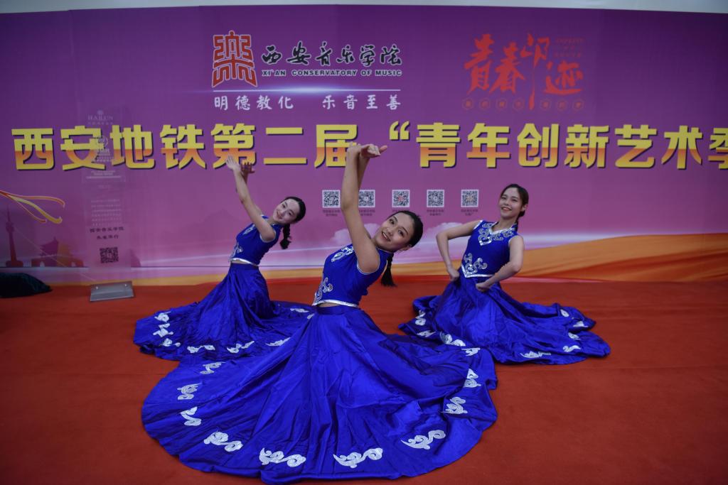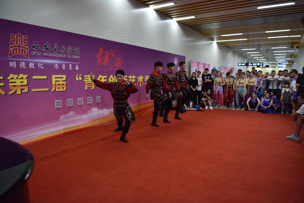 2018年9月8日至12日,舞蹈系部分优秀学生在辅导员老师的带领下赴大雁塔北广场地铁C出口参演西安地铁第二届“青年创新艺术季”——青春印迹展演活动。此次活动的开展,是在政府和教育主管部门对艺术展演的高度重视下进行的,活动的宗旨是为了传播先进文化、弘扬民族精神和建设健康校园文化,助力西安追赶超越大发展。