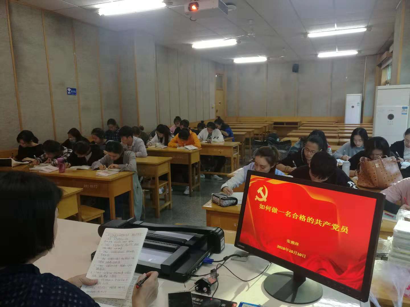 为做好党员发展工作,加强党的建设、适应新形式发展的要求,进一步增强入党积极分子的党性修养与政治思想觉悟,根据学院党校学习培训计划,2018年10月10日下午4:00,舞蹈系党总支书记张雅萍在4-307教室为28名学生入党积极分子上了一堂生动的党课。内容为第34期党课学习培训系列之三——如何做一名合格的共产党员。