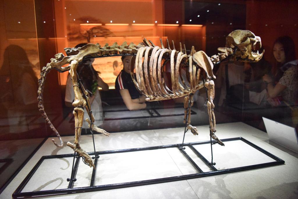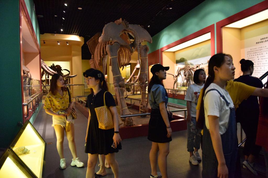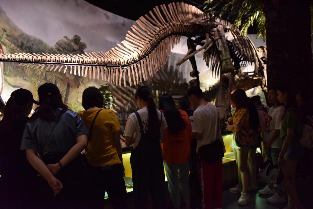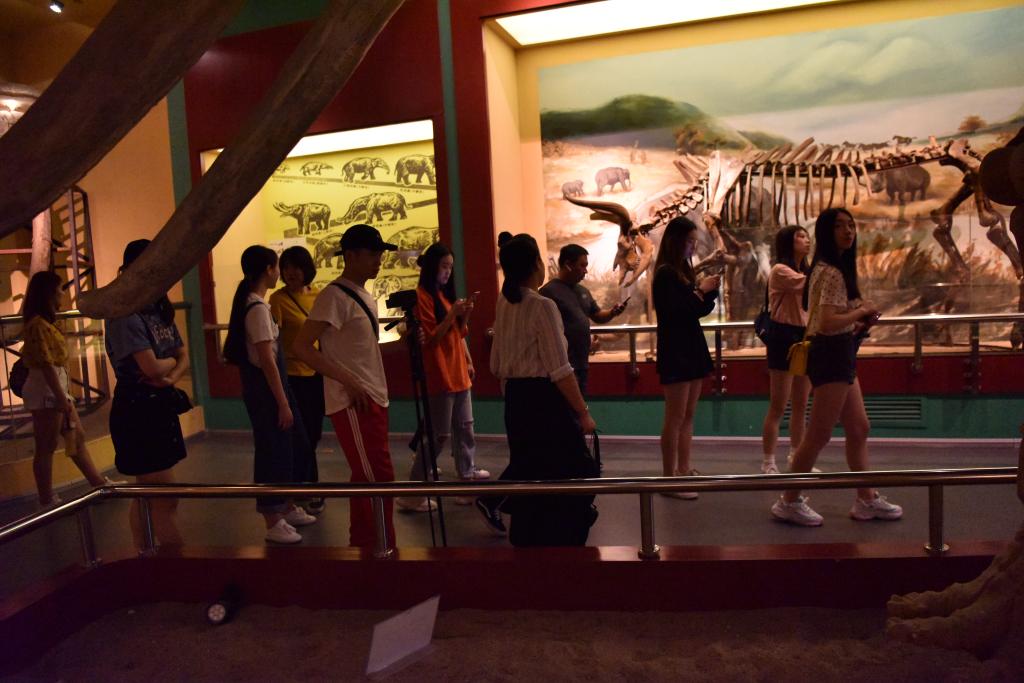 随后我们到了地球馆,在这里看到了地球与太阳系的起源,了解到生命的起源,最初的生命是发生于无氧水体中的一系列化学演化的产物。该馆以该学科师生有关研究成果为主要陈列内容,分秦岭造山带及其资源环境效应、寒武纪大爆发时期古生物化石和古脊椎动物化石等三个专题展出。在这里可以看到最古老的脊椎动物原始祖先——生活在5.3亿年前寒武纪早期海洋中的鱼,这块化石的发现将脊椎动物的历史纪录至少向前推了5千万年,是半个世纪以来关于寒武纪生命大爆发研究中最重大的关键性突破。寒武纪生命大爆发创生了百分之九十以上的动物门类,奠定了动物类型多样性的基本框架。关于恐龙的灭绝,解说员也进行了详细的解说,我们站在巨大的恐龙化石下感觉到自己是那么的渺小。从地质时代的卵生动物到哺乳动物的出现,再从哺乳动物到人类的出现,讲解员向我们依次介绍了地球的历史,让我们领略到了地球的强大,生命的强大,人类的伟大。