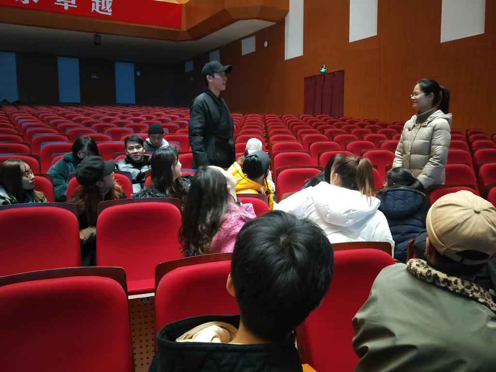 2019年11月27日上午10时,舞蹈系学生党支部开展“不忘初心、牢记使命”主题教育。本学期舞蹈系学生党支部在日常教学任务紧,演出任务重的情况下,见缝插针,利用心理情景剧《起跑线》在西京大学巡演彩排的休息间隙的时间,在西京大学的京华礼堂,学生党支部书记王尚清老师组织参加《起跑线》演出活动的积极分子和学生党员开展了主题学习活。
