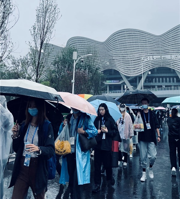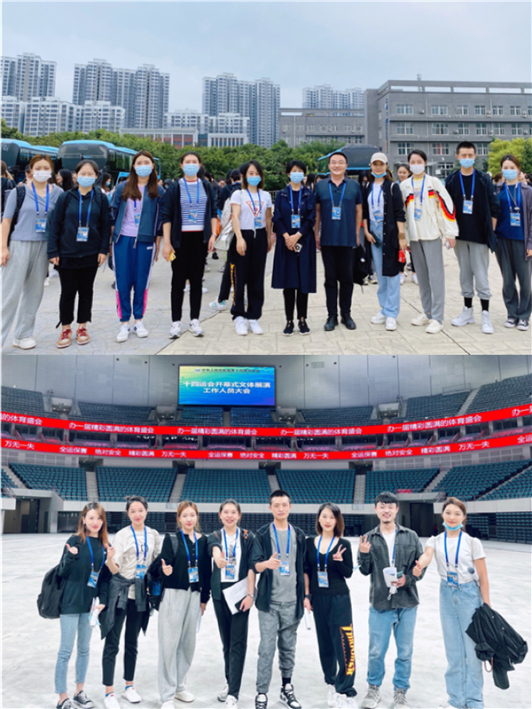 西工院到奥体中心的车程不过15分钟,在这短短的行程当中,学生们用蓝牙连上大巴音响,大家听着音乐,跟着律动摇摆,用愉悦的心情迎接新的工作任务!