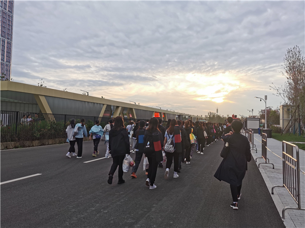 从日出到日落,清晨到黄昏,经过了一天紧张排练日程后,我们西音舞蹈学院10名领队老师与171名学生一起从晨曦中归来。从归来、休息、出发、训练再到归来,这不过是我们战斗过的每个寻常日子中的小小缩影。无论是大雨倾盆,还是烈日炎炎,我们的学生都风雨无阻,迎难而上,坚持完成每一次排练任务。一台大型演出活动的背后有无数的团队、工作人员在艰苦奋战着,而我们不过是这其中的一员,虽然每一天我们都面临着全新的挑战,但我们西音学子将不负众望,用激情洒满十四运开幕式的舞台!