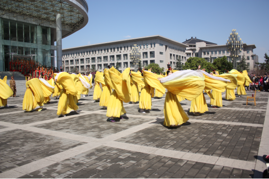 2016年3月26日西安音乐学院舞蹈系参加2016清明公祭黄帝陵大典的32名同学,前往陕西师范大学新校区,进行祭祀乐舞的联排,下面是同学们在陕师大联排的情况: