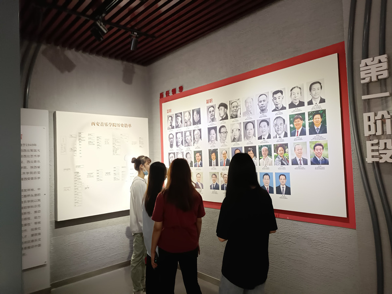 西安音乐学院校史馆展现了学校七十多年来建设和发展的历程,全面直观地反映了建校以来的人和事,凸显了我校的办学特色。尊重历史,突出重点,弘扬红色基因的西音精神。校史馆的主体内容包含了我校发展历程的四个阶段,即“奠基拓荒、培菁育秧”“承先续往、曲折前行”“拨乱反正、焕然新妆”“科学发展、乐府华章”。同学们在校史馆的文字、图片和资料中,体会西音人的昨天,品味今天,展望明天。