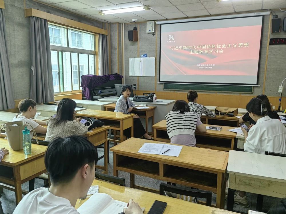 6月21日,舞蹈学院教工党支部在艺术中心三楼召开第三次学习贯彻习近平新时代中国特色社会主义思想主题教育学习会,舞蹈学院班子成员讲授主题党课。分党委书记张雅萍以《习近平六次来陕考察讲话精神学习》为题,院长李颖以《深入学习领会习近平总书记教育的重要论述》为题,副院长王鹏以《办好人民满意的教育》为题讲授党课,副院长、副书记马昱解读、交流和分享了《习近平关于调查研究论述摘编》中相关篇章。