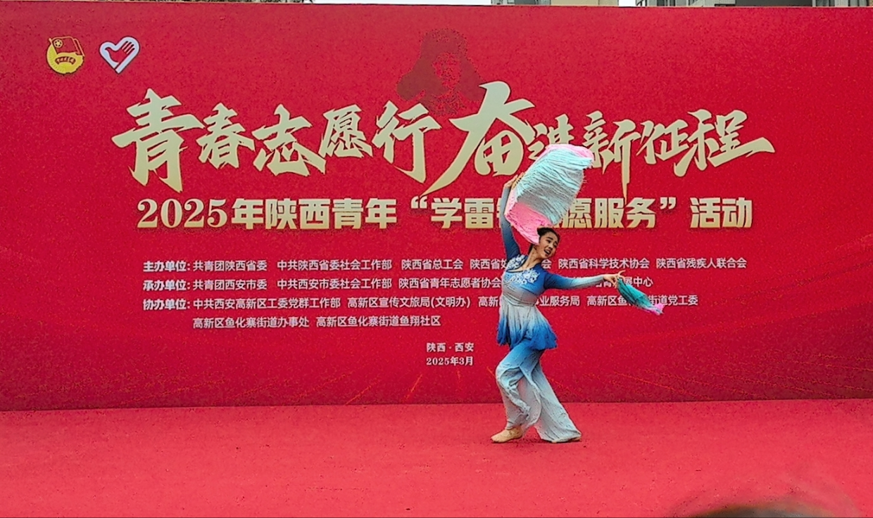 2025年3月5日,在第62个“学雷锋纪念日”到来之际,在团省委、校团委的号召下,舞蹈学院积极组织17名青年志愿者走进西安市高新区鱼翔社区,开展“关爱传温暖,舞韵青春行”志愿服务活动。以艺术之美传递温暖,以青春行动诠释新时代雷锋精神。