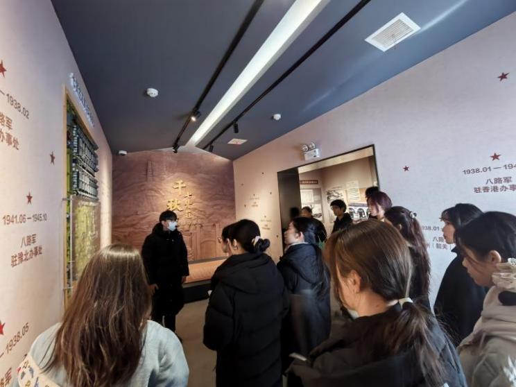 全体同学整齐列队于纪念馆庭院,面向党旗肃立默哀,向为中国革命顽强拼搏、英勇牺牲的英雄先烈致敬。随后,在讲解员带领下,同学们参观了周恩来、宣侠父等革命先辈的旧居及多座历史展厅,一起重温了那段光辉的历史。一张张照片、一件件文物生动还原了“八办”作为“红色桥梁”“红色堡垒”光荣使命。同学们全神贯注,在看到泛黄的书信电报、朴素的起居陈设、简陋的医务室忍不住感叹和感动“革命先辈们真是大伟大了”。