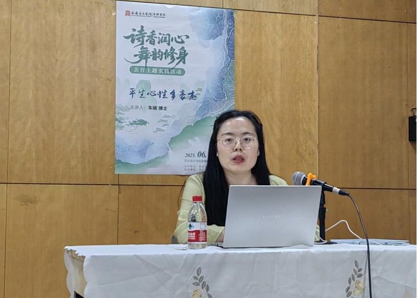 为弘扬中华优秀传统文化,深化美育实践教育,6月13日下午舞蹈学院在三号教学楼一楼演奏厅“诗香润心,舞韵修身——平生心性多豪杰”美育实践主题活动。活动特邀人文学院车婧博士作主题讲座,舞蹈学院团总支书记张琳主持活动。