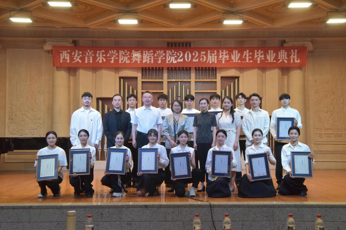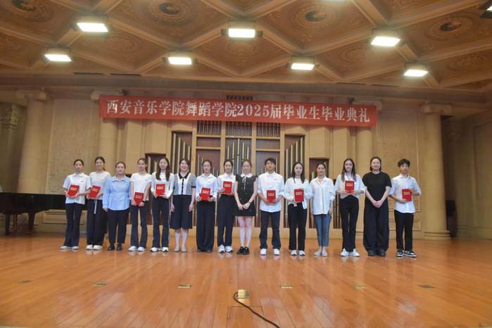 2025年6月26下午,西安音乐学院舞蹈学院2025届毕业生毕业典礼在校学术厅举行。学院分党委书记王炜、院长马昱、党委副书记许瀚心、副院长王鹏、张琳及教师代表出席典礼。活动由分党委书记王炜主持。